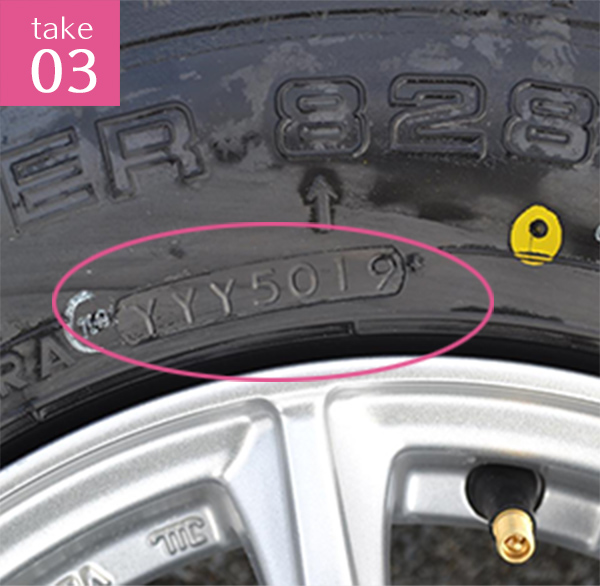 タイヤの製造年週を4本とも撮ると証拠能力がアップします。