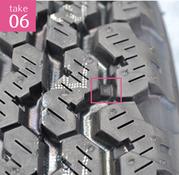 タイヤの残り溝や偏摩耗の仕方に特徴があるかもしれません。石が挟まっているのも特徴です。