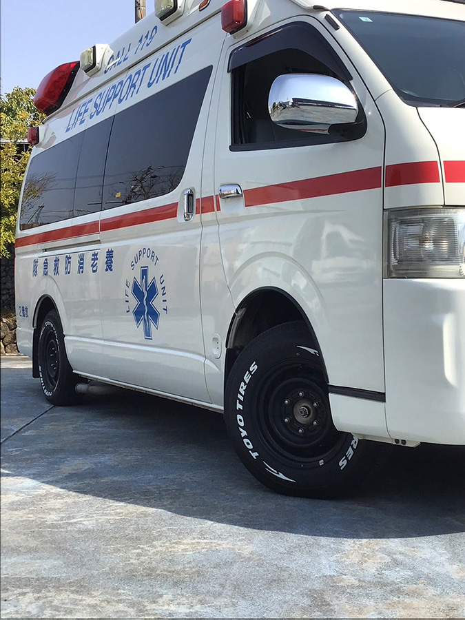 2025.3.19-25 養老町の救急車全車に養老ベースが寄贈したドレスアップタイヤを装着完了